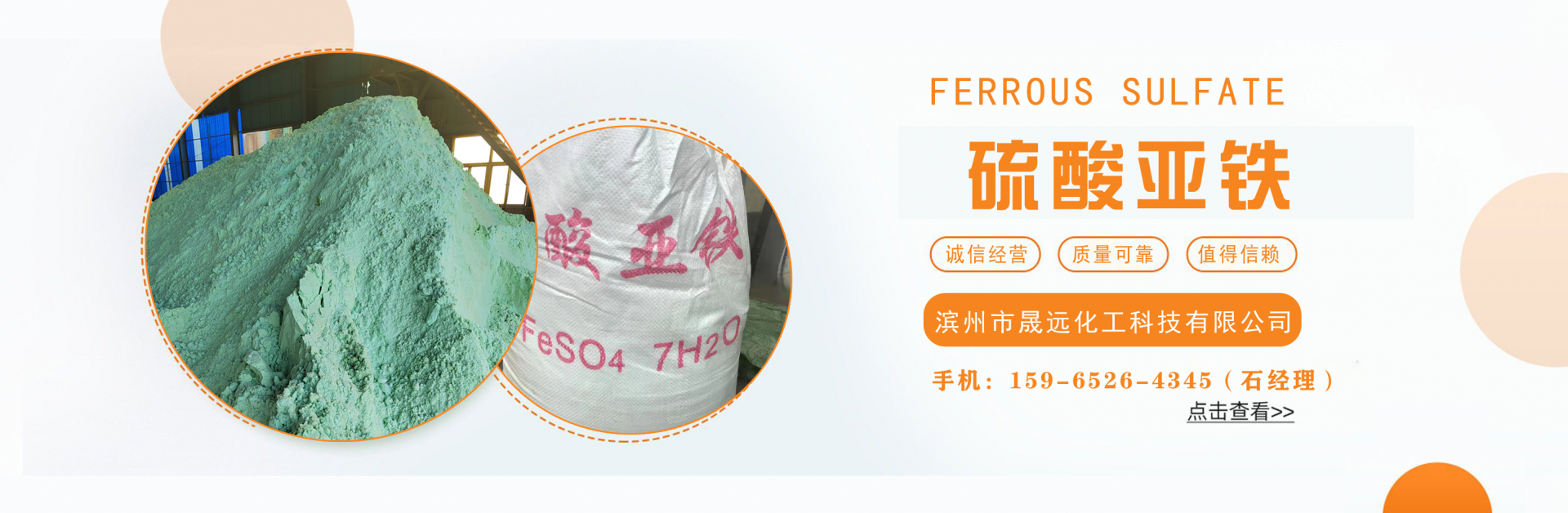 濱州市晟遠(yuǎn)化工科技有限公司主營(yíng)硫酸亞鐵,液體聚合硫酸鐵,七水硫酸鎂,磷酸三納,聚合氯化鋁,食品級(jí)碳酸氫銨等化工原料。公司自成立以來,以過硬的產(chǎn)品質(zhì)量為基礎(chǔ),以誠(chéng)信服務(wù)為宗旨,客戶遍布全國(guó)各地,歡迎來電咨詢或公司考察!...